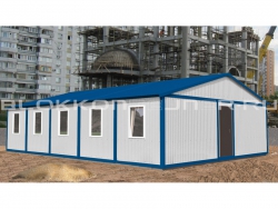 ГлавнаяКаталогМодульные зданияМодульные общежития → Общежитие модуль из 10-ти шт вагончиков с коридором 1м